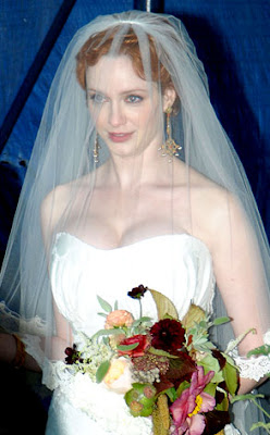 One of my favorite actresses was hitched Sunday. Christina Hendricks who plays the sultry Joan Holloway on Mad Men, married fellow actor, Geoffrey Arend at II Buco restaurant in New York City. She told In Style Weddings of the place, "There will be about 70 people. The room is small and romantic and rustic and intimate, like it's in someone's home in Italy. The food is extraordinary—charcuteries, shared platters—very family style."